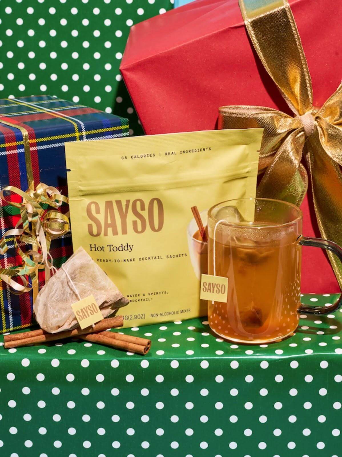 Imagine if the perfect cocktail were always as simple as steeping a tea bag in your favorite cold or hot booze? This particular gift set includes 8 Hot Toddy sachets, 1 limited edition SAYSO mug, and dehydrated lemon slices for garnish.