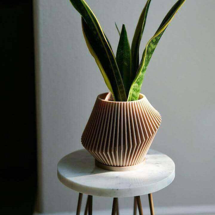 WoodPulse makes this beautiful geometric plant pot from sustainable, plant-based PLA and recycled wood AND, for every purchase they plant a tree in your honor.